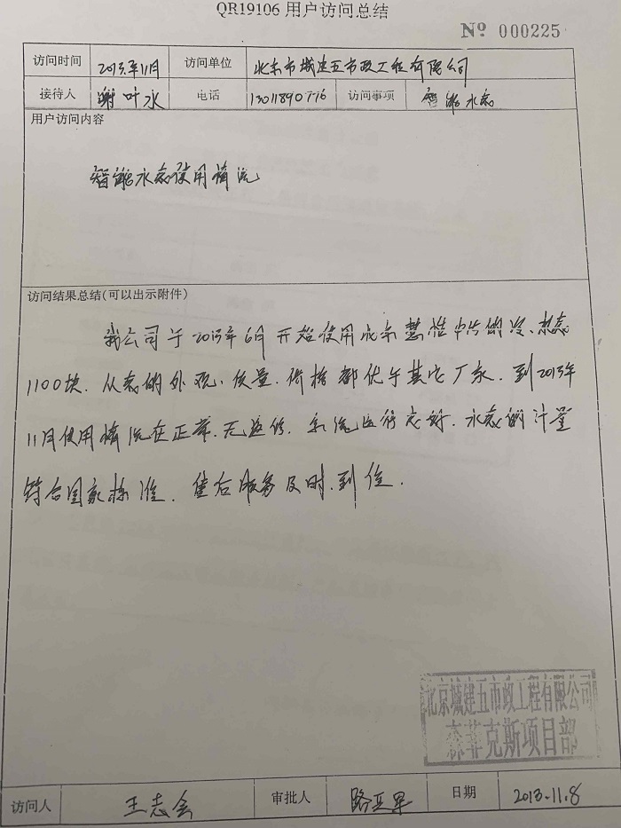 自从2013年采购宁波博源水表厂生产的1100块冷水水表安装投入使用以来,水表运行的稳定性就一直很好,无异常、无返修,并且配套系统运作良好、更新快,售后服务到位、热情,解决了我司智慧计量工作的各种难题,提高了计量工作的效率,为我司提供了计量管控便利。
